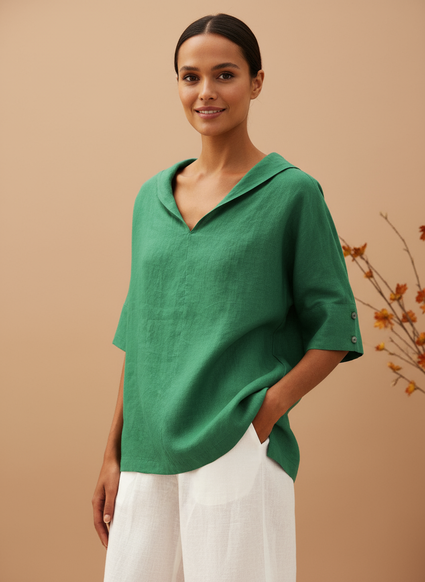 Bluză lejeră din in pentru confort zilnic și stil elegant, ideală pentru orice ocazie.