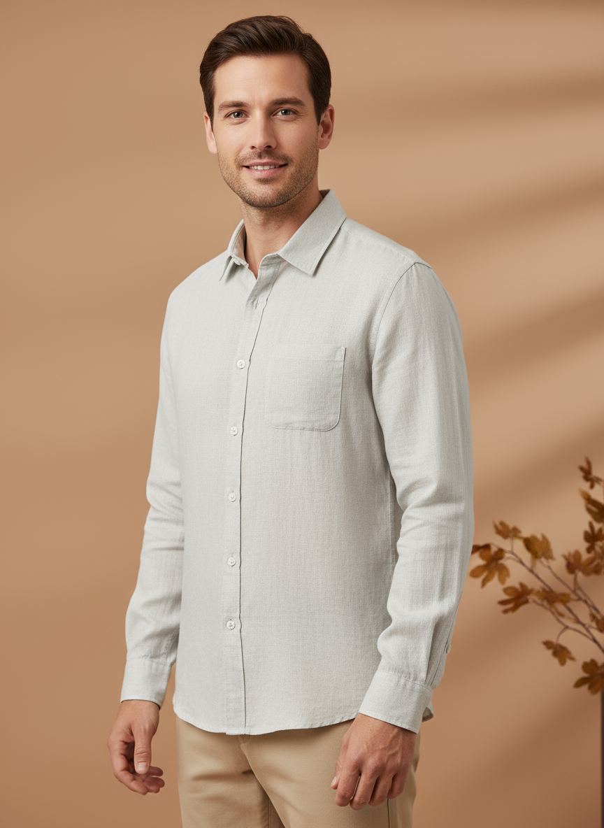 "Confecționată din in de cea mai bună calitate, această cămașă este epitomul luxului și confortului."