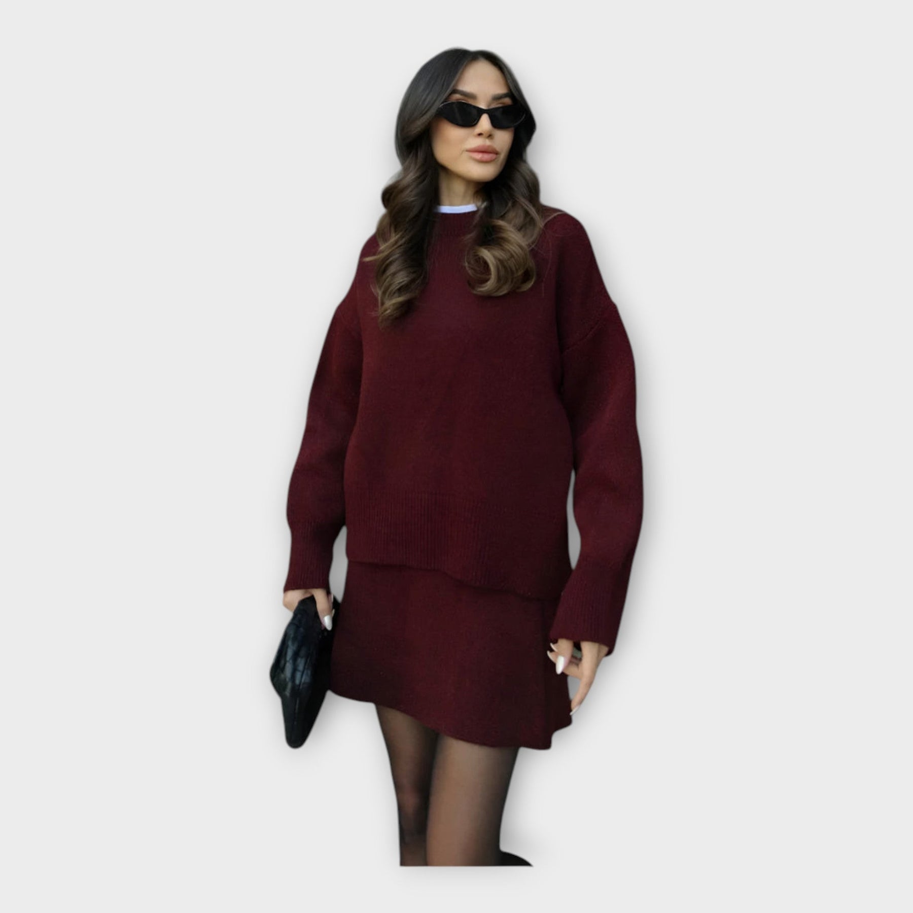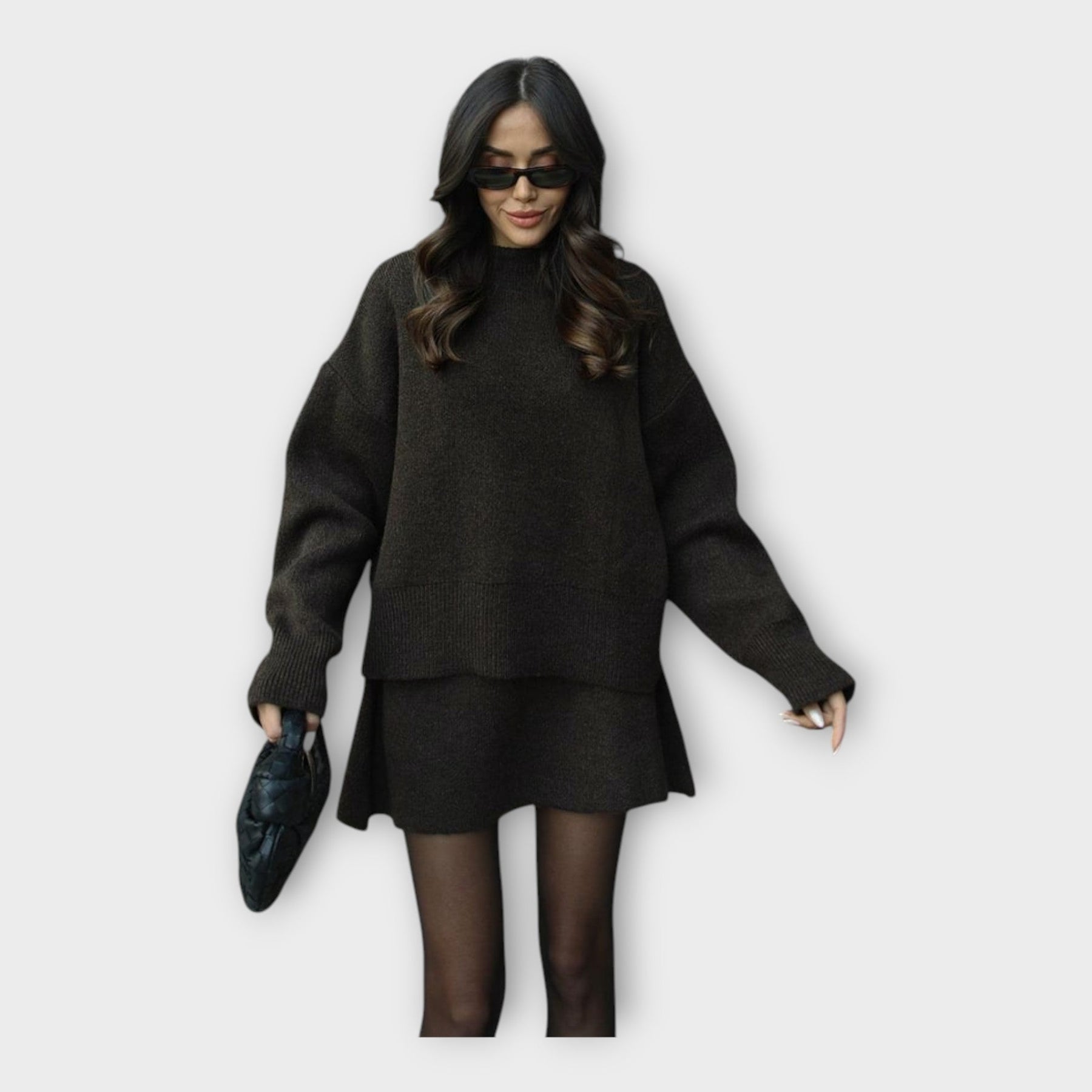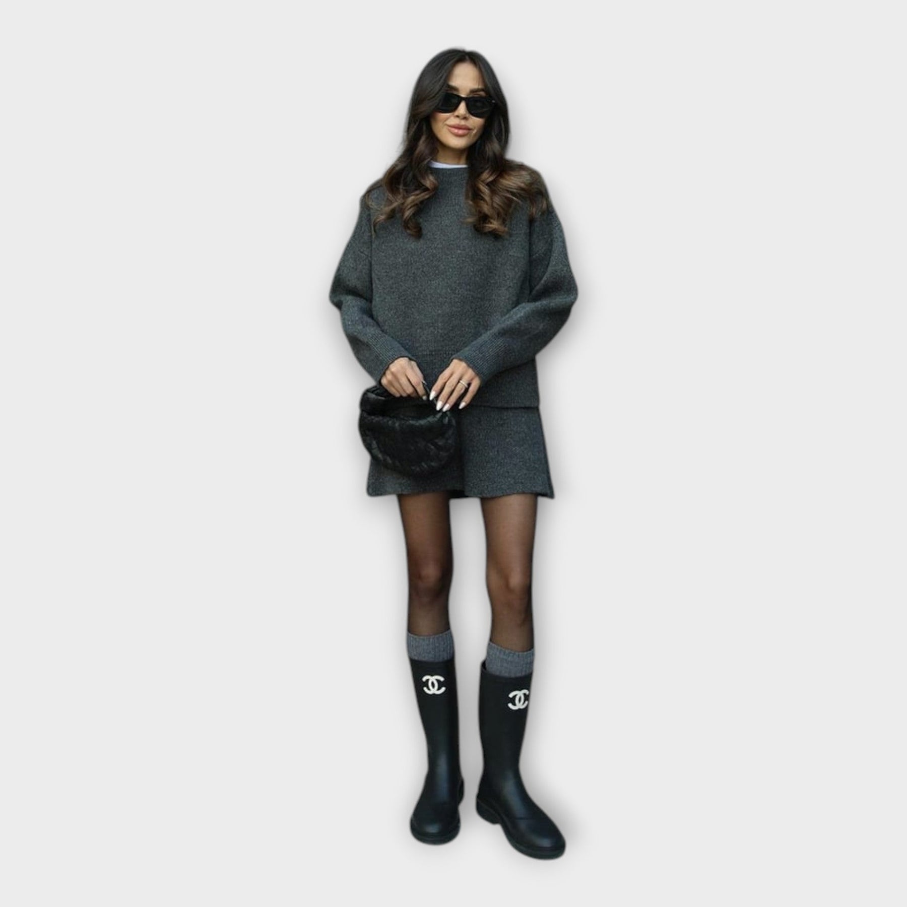 Set de Bluză și Fustă Tricotată cu Linie Modernă